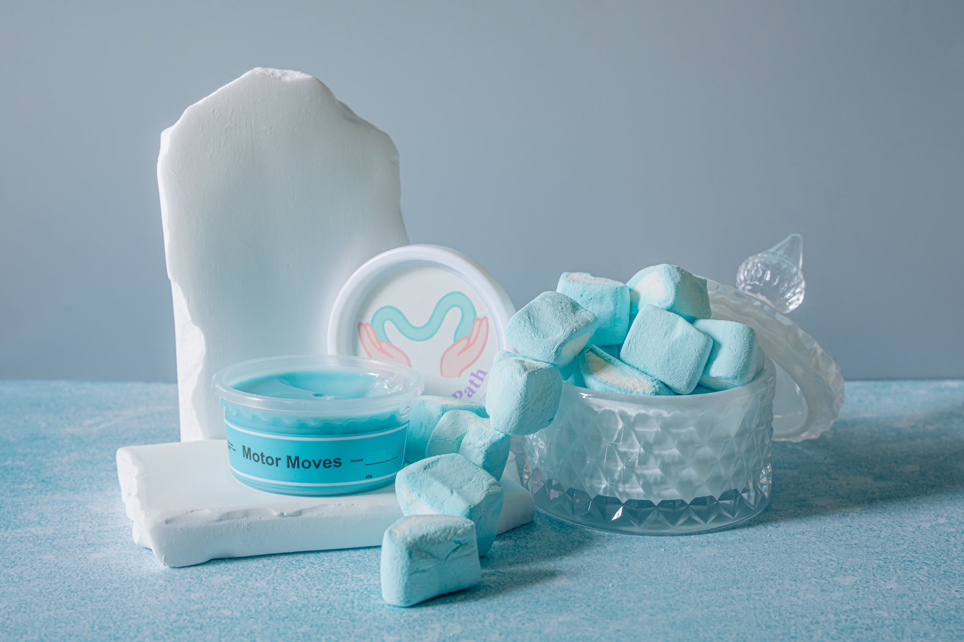 A firm blue putty made for hand strengthening and proprioceptive input. Designed for resistance-based sensory and fine motor work.