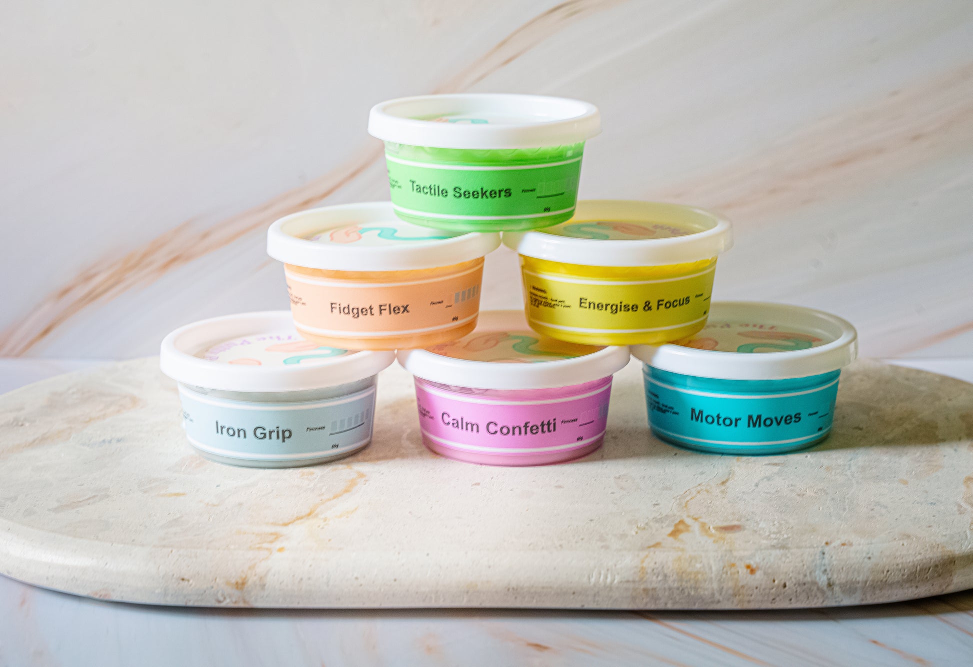 Create your own custom trio from our Core Collection. Choose any three putties to suit your unique therapy goals, whether you're building strength, supporting regulation, or encouraging fine motor development. Perfect for targeting specific needs or trying a variety of resistance levels.